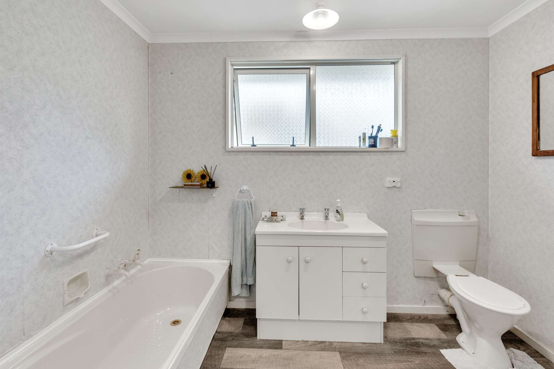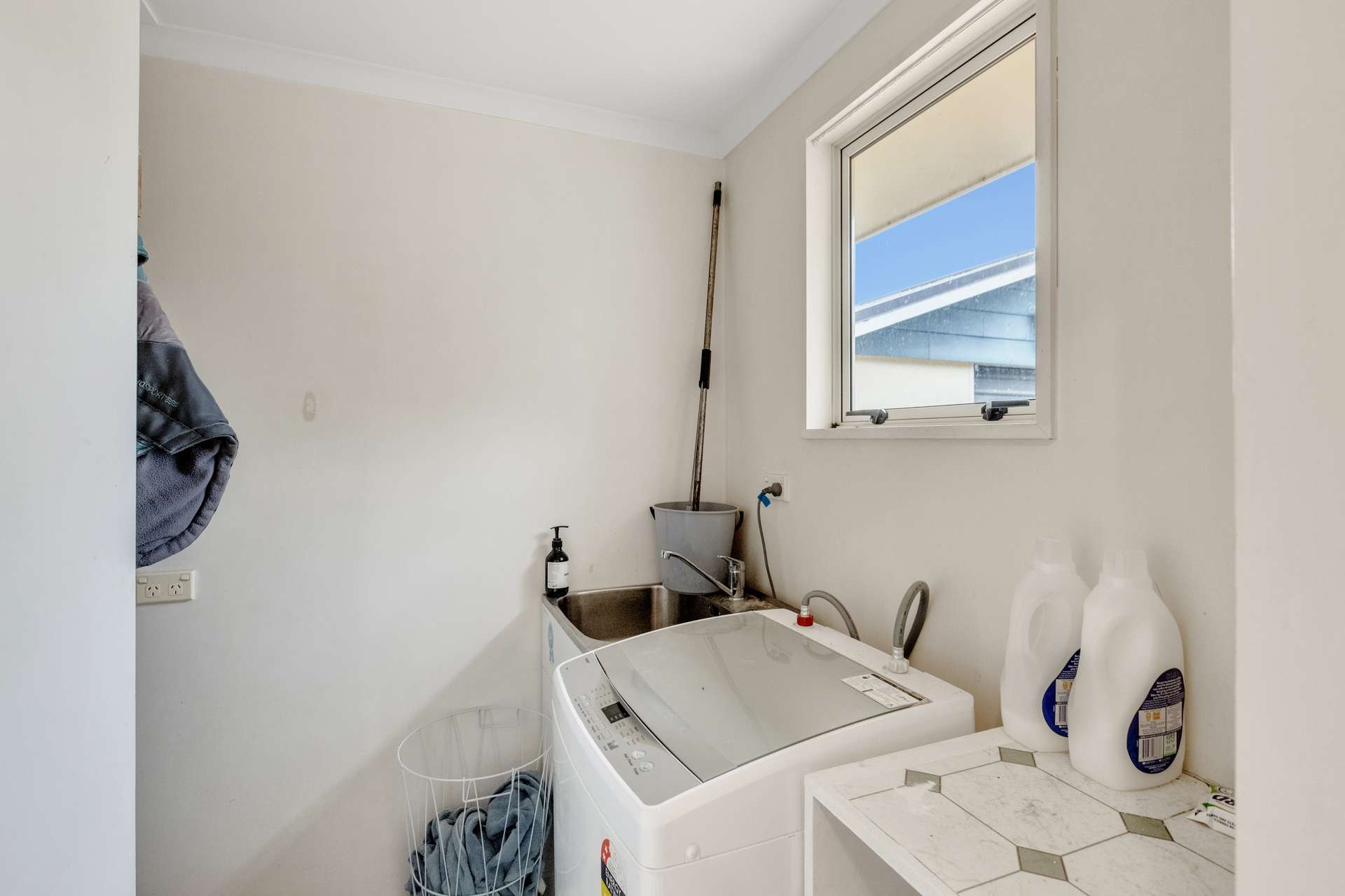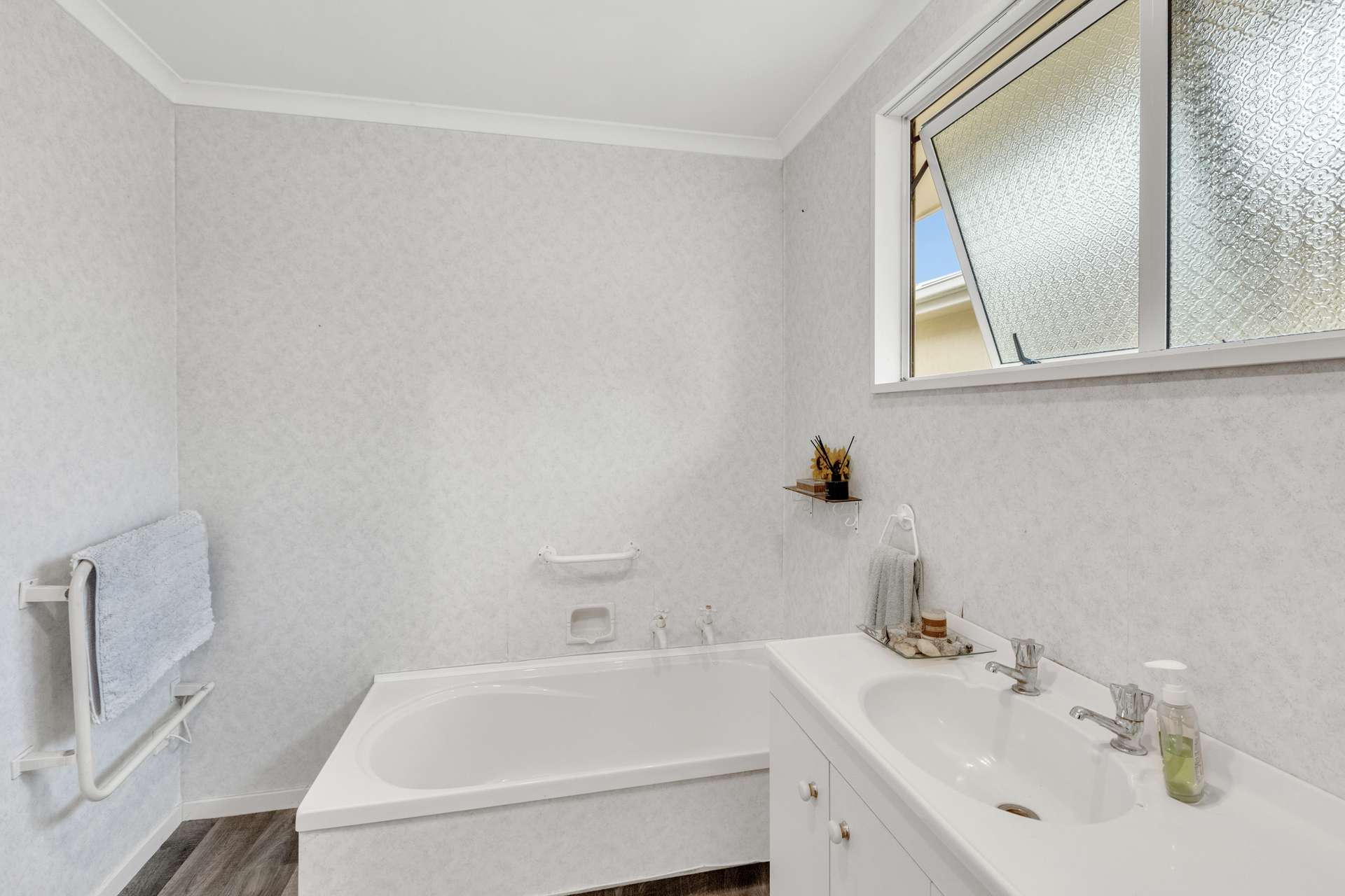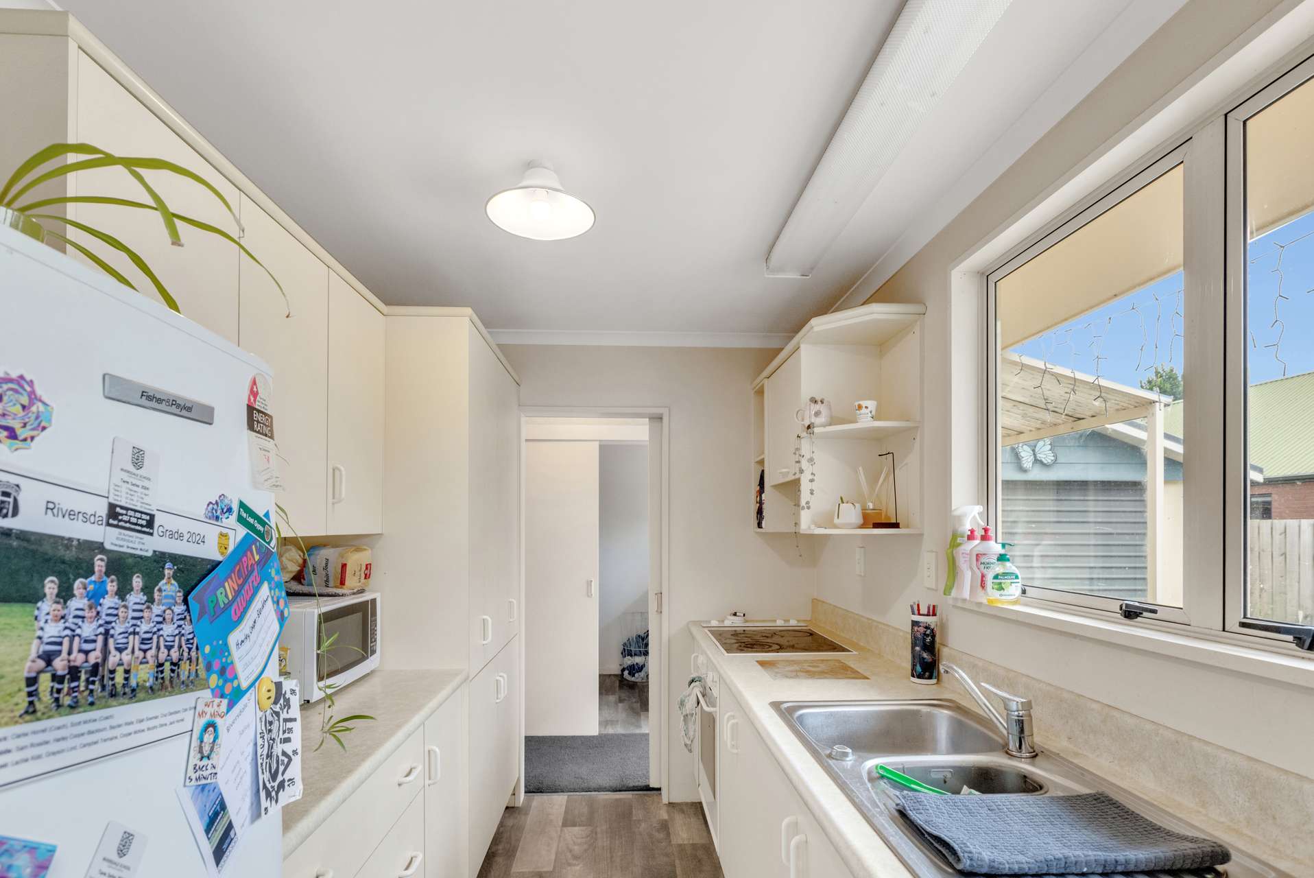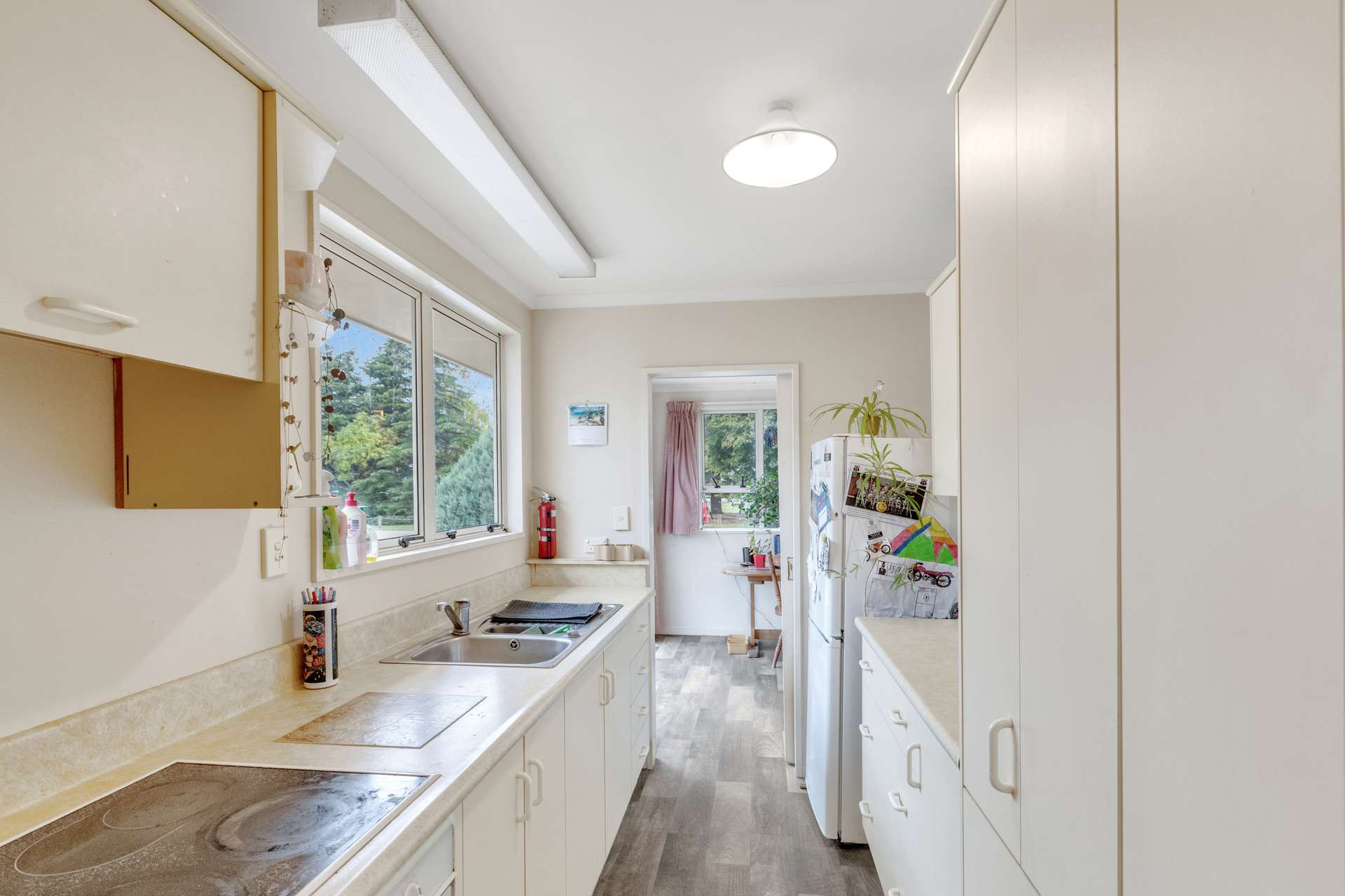 The kitchen is bright and functional with a classic galley layout, enjoying a sunny outlook and connecting easily to the dining and living spaces. The open plan layout is practical and made even more comfortable with a heat pump and neutral decor throughout.