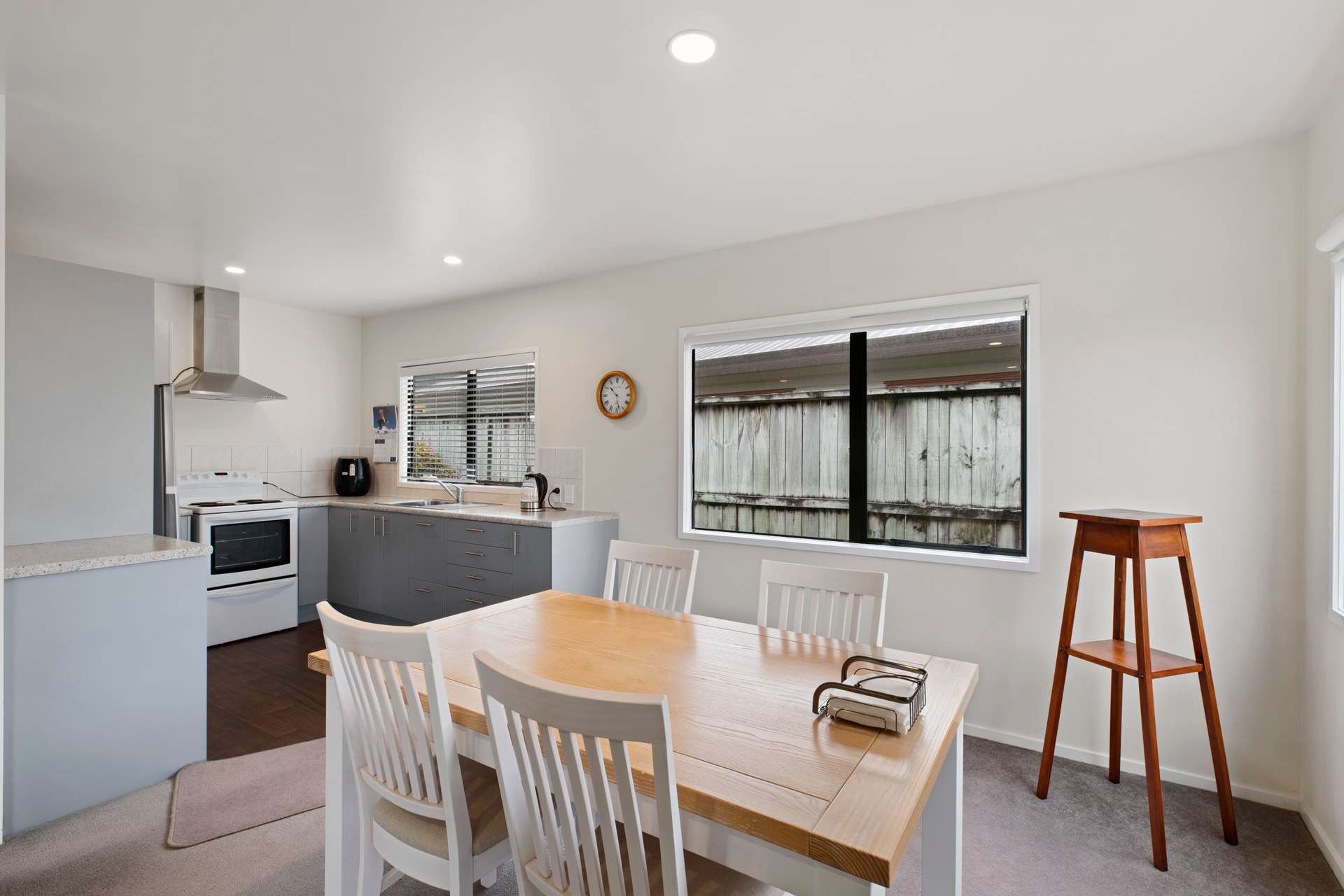 You can easily fit a large dining table for shared family meals in the dining area, and the open plan lounge is a great family-friendly space. It has a heat pump for year round comfort, a fabulous light colour scheme, modern lighting and easy access out to the deck.