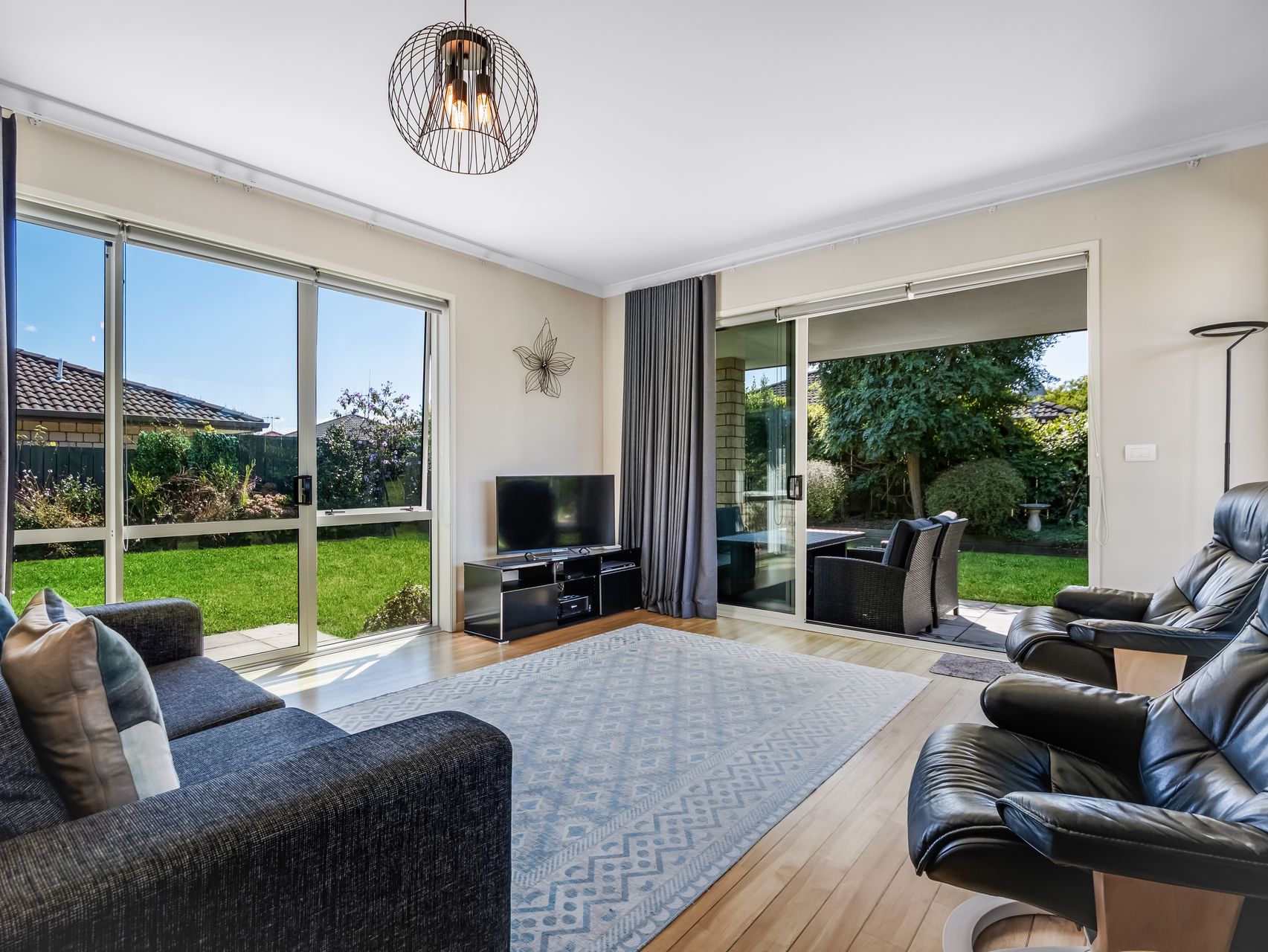 Four bedrooms are set out in a way that feels practical without being rigid. The main bedroom has its own access outside along with an ensuite, giving it a sense of separation when you want it. The remaining bedrooms are well-sized and easy to personalise, supported by a family bathroom with both a bath and separate shower, plus a dedicated laundry that keeps the everyday running smoothly.