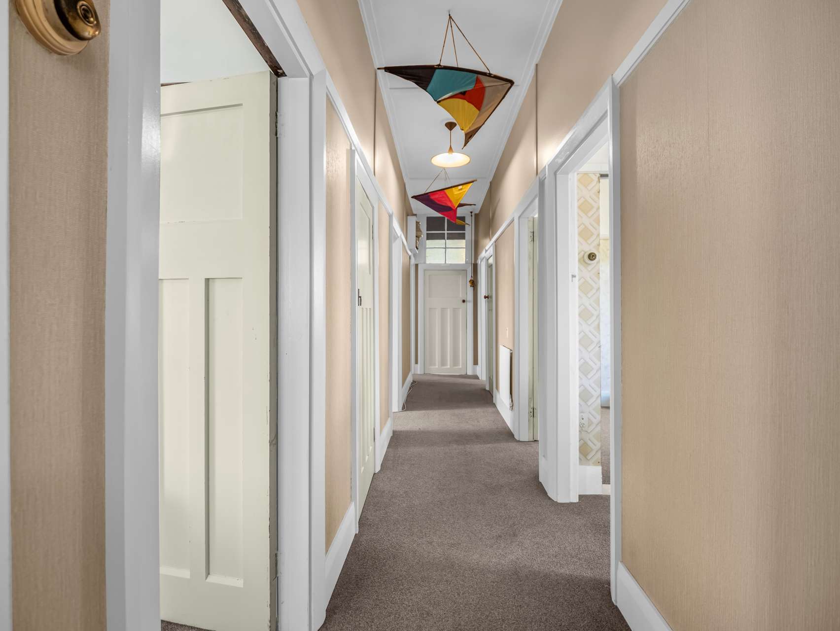 The home has many traditional characteristics of villas of the era. Detailed high ceilings, hallway wood detailing. The kitchen features a coal range with the laundry and toilet located close by.