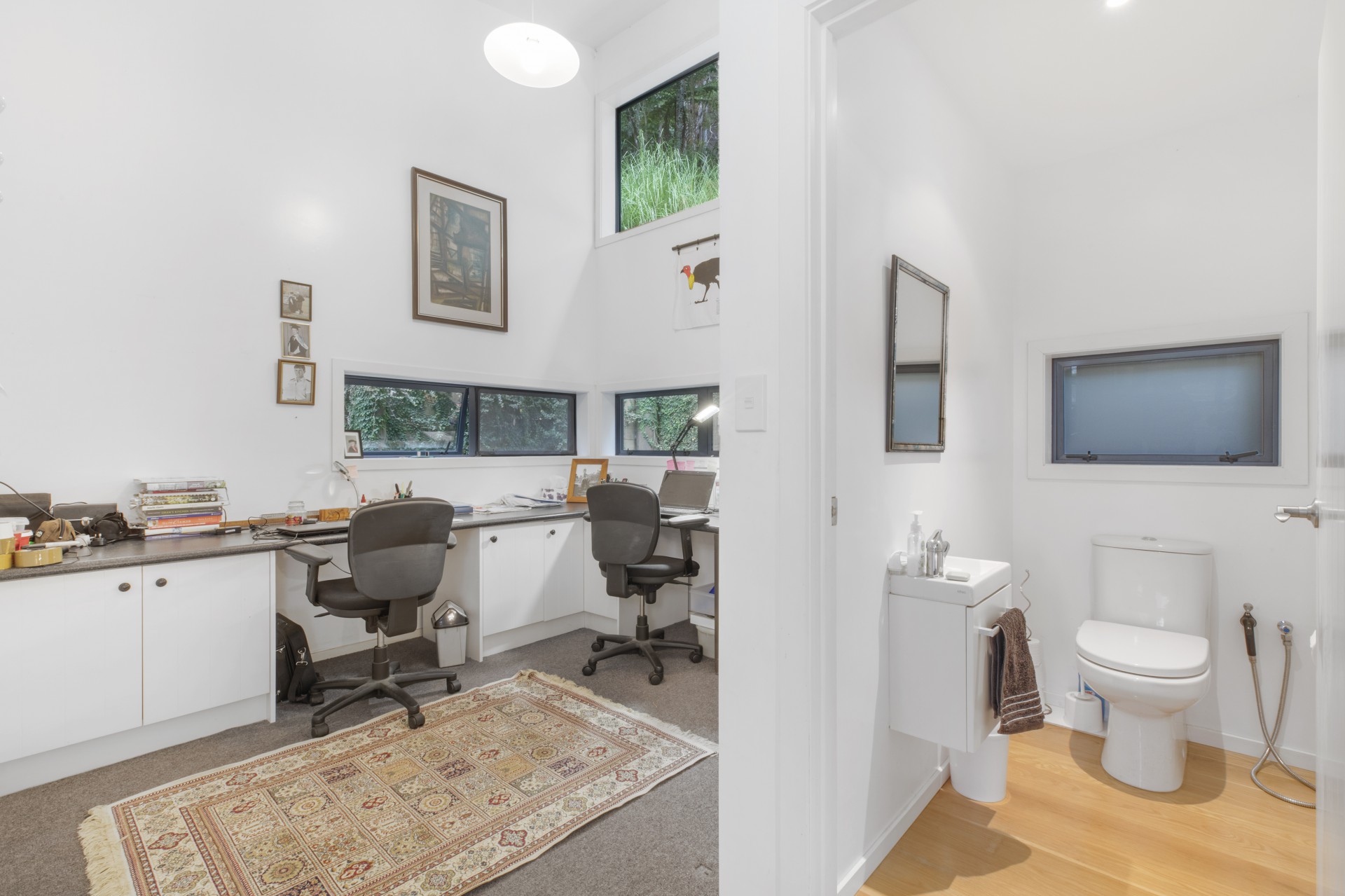 The main bedroom is upstairs, with generous double robes and a beautifully bright and white bathroom, with tub. Luxurious. The open study, with its own private smaller bathroom, is simply the ideal place to do your best work.