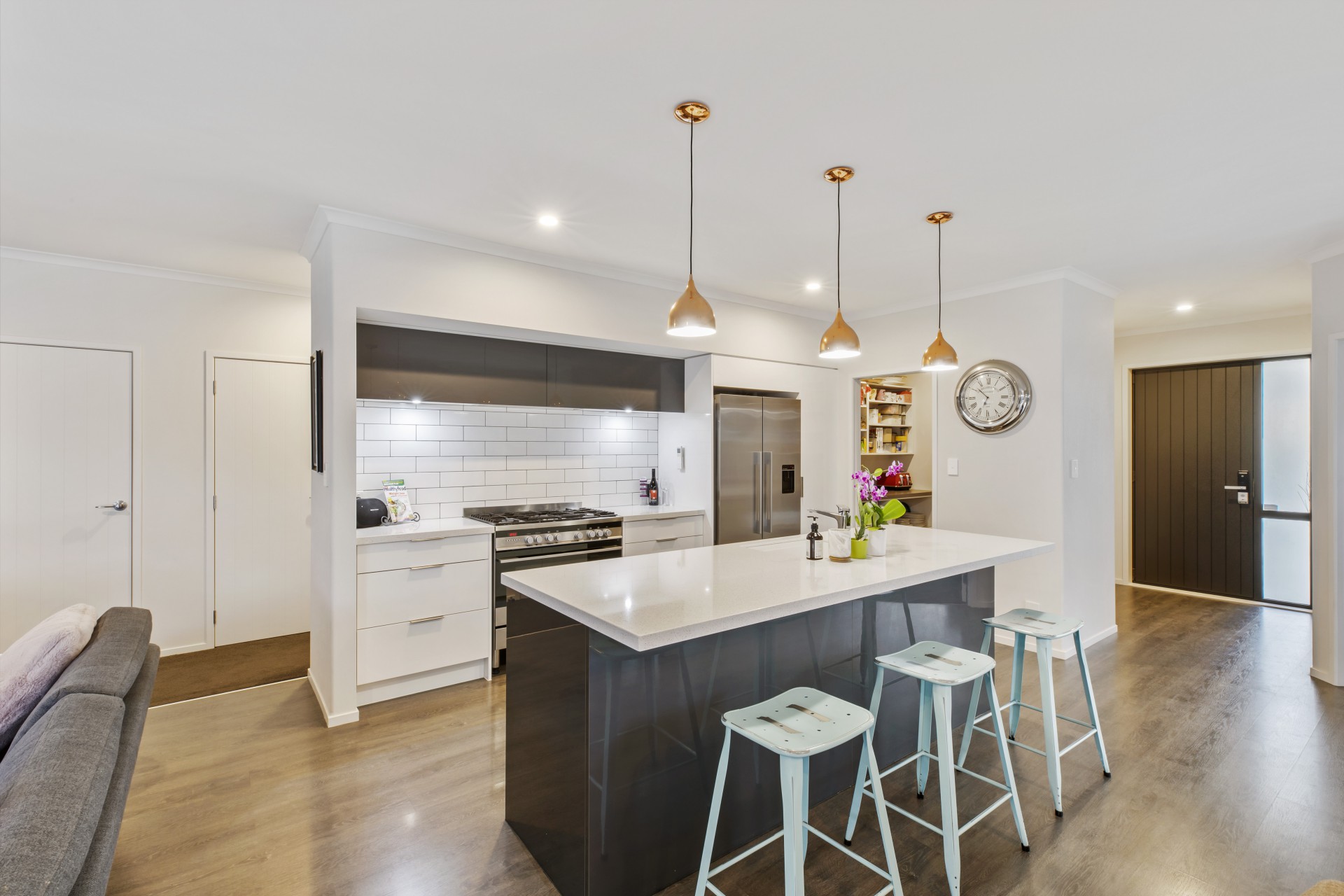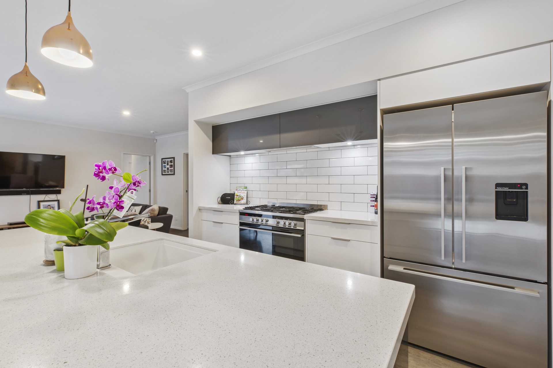 The property boasts two living areas, the first and largests is an open-plan lounge/dining/kitchen space, and the second could be used to suit the individual needs of your family. Maybe it will be a more formal lounge space, a media room or a playroom for the kids? The kitchen is fantastic, with a five-element gas range, stylish subway-tile splashback, an island counter with seating and a walk-in butlers pantry. There is room a long dining table, so there is a seat for everyone, and the space opens out on two sides to the large deck. This is essentially an additional entertaining area, with room for an outdoor table, lounge suite, BBQ, and maybe even a chiminea to enjoy this coming summer.
