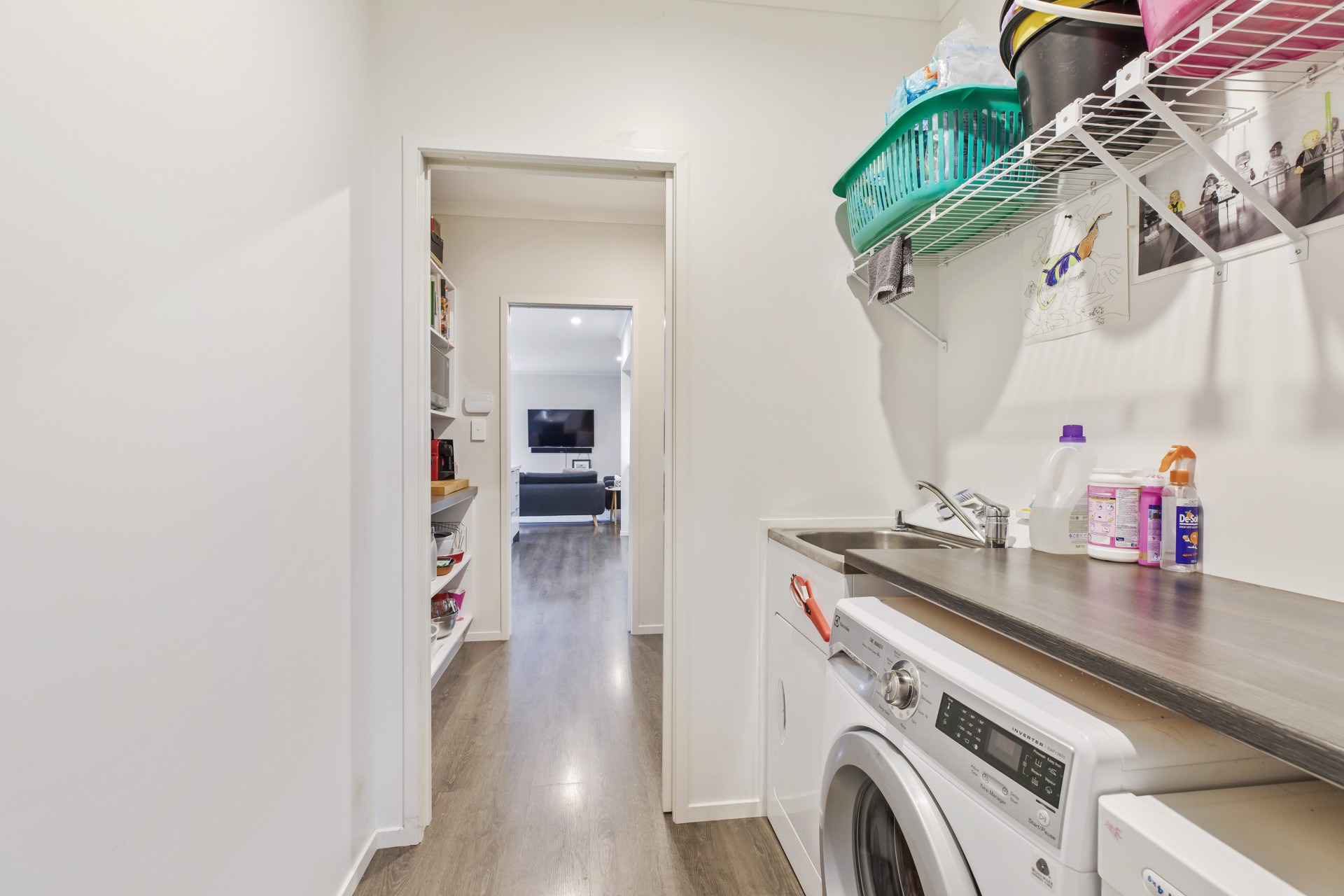 There is an internal-access double garage, with a laundry room off the garage that connects into the pantry/kitchen, as well as extra off-street parking.