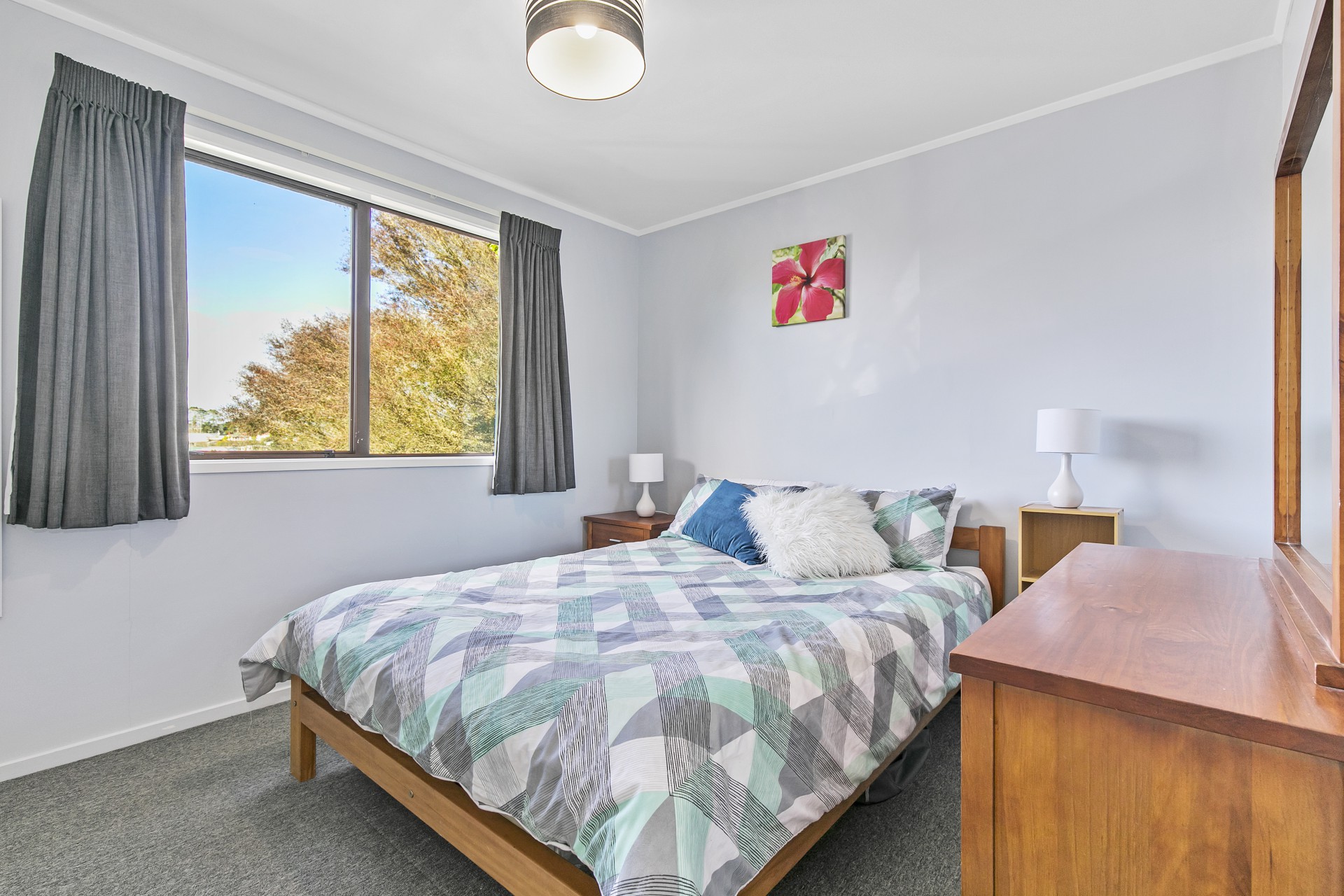 The open plan living area provides a warm and inviting space that will be the location of many meals shared, and, with the help of the heat-pump and home ventilation, many cosy evenings in. The kitchen is light and fresh, providing the perfect base from which to cook family meals. Each bedroom has been freshly painted, and carpeted floors will ensure that little (and big!) toes are kept toasty in the mornings. The bathroom is crisp and boasts a built in bath, with a separate laundry and toilet (with sink).