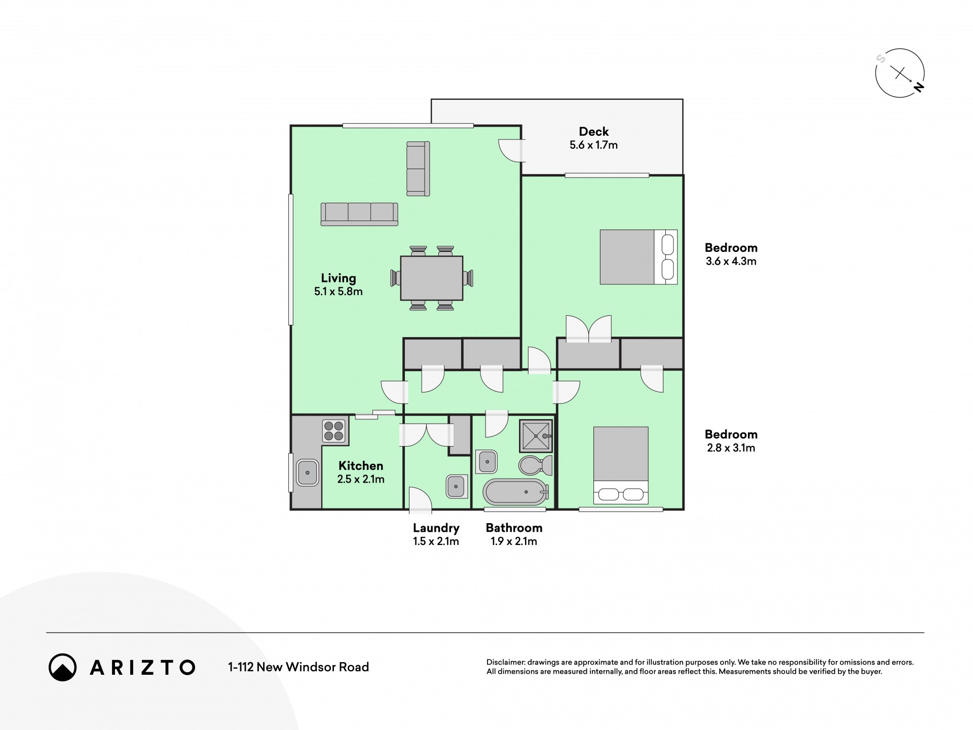 This solid and tile brick unit of just two in New Windsor is ripe and ready. The spacious lounge has stunning large windows to let in the light. The kitchen is a compact with a separate laundry. Both bedrooms have large windows and built in wardrobes. These are spacious, light rooms; one large double and one small double. There is a large shared green space at the back and is ready for someone to add value by doing some renovations.